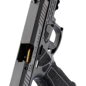 La nueva pistola STEYR PISTOL A2 MF es el miembro más nuevo de la familia de productos STEYR ARMS. Está disponible en 3 tamaños (L-Grande; M-Mediano y C-Compacto) con cargador de 17 municiones, un riel picatinny real (MilStd. 1913) en la parte delantera y una empuñadura totalmente ajustable. La correa trasera, así como ambos lados de la empuñadura, son ajustables con incrustaciones de diferentes tamaños. La empuñadura también cuenta con un embudo para un cambio rápido del cargador.