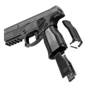 | Marco de agarre: | Empuñadura sintética con placas laterales y correas traseras intercambiables. |